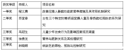 | 6 | 三等奖 | STR202208302 | 中国人群膳食质量评价指数的建立与应用 | 何宇纳 | 何宇纳、杨晓光、房玥晖、王惠君、连怡遥 | 中国疾病预防控制中心营养与健康所 |