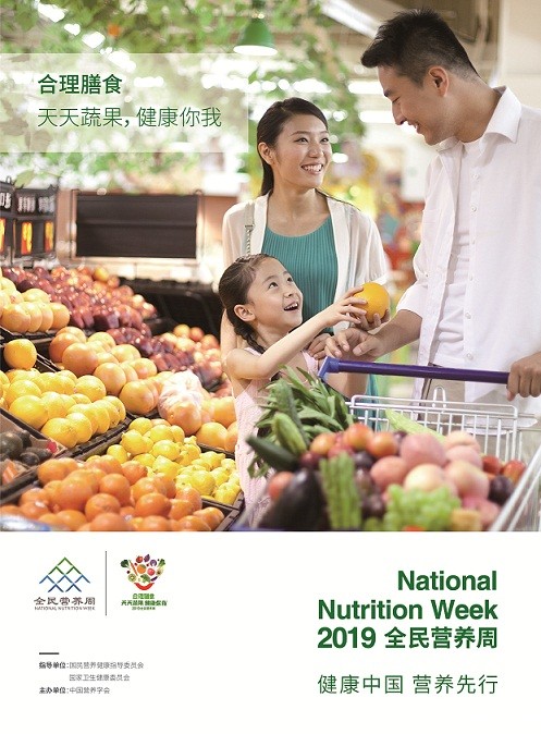 2019年全民营养周口号“健康中国 营养先行”。2019年NNW活动时间:5月12-18日。