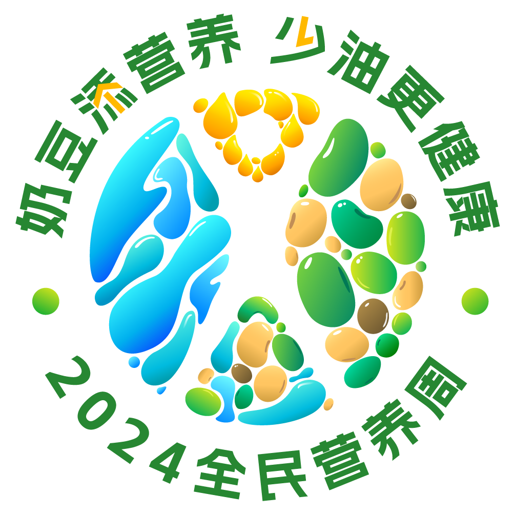 以圆形标志为核心符号,巧妙地将蓝色流动的奶、黄青色为主的大豆、逐渐减少的油滴融合为一体,标志中心构成一个充满蓬勃活力的人物姿态,传递着“奶豆添营养,少油更健康”的主题理念,呼吁大众多吃奶类和大豆,并避免过多摄入烹调油,一起践行“健康中国 营养先行”的理念!